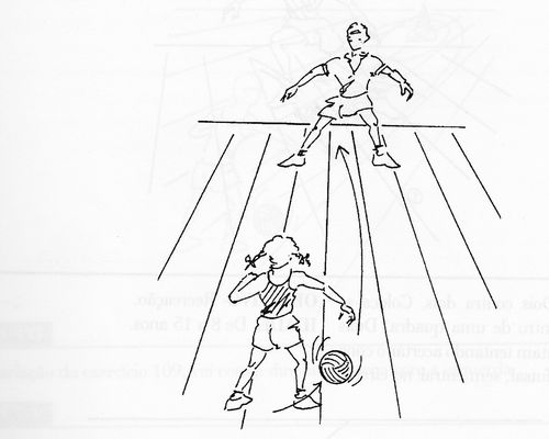 equipe deverá estar em seu próprio lado e nenhum atleta da equipe contrária à iniciadora da partida poderá aproximar-se a menos de 3 (três) metros da bola, nem invadir a meia quadra do adversário enquanto o pontapé inicial não for dado e a bola não percorrer distância igual a sua circunferência.